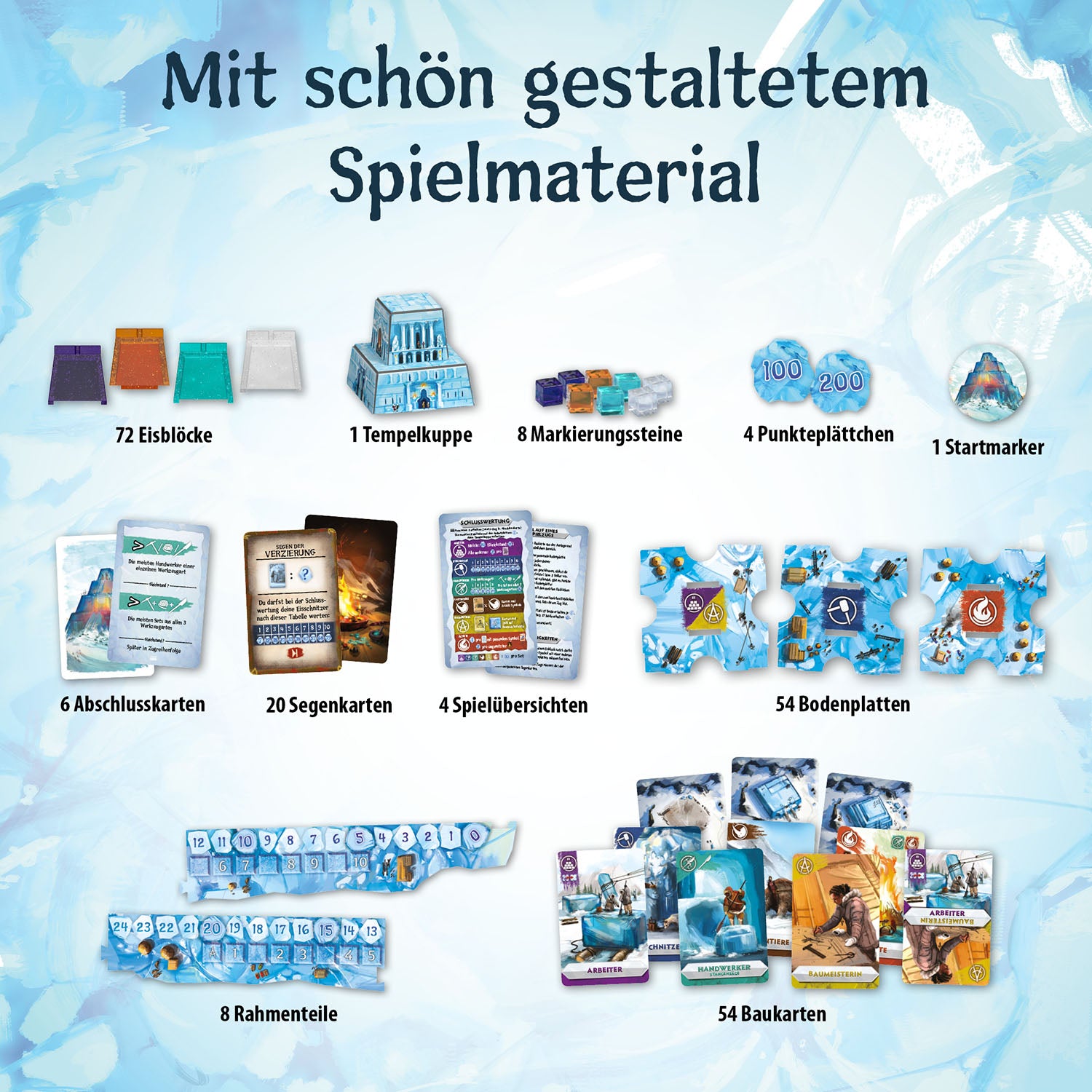 Ein Nunatak ist ein aus dem Eis herausragender Felsen oder Berggipfel. Doch stimmt das wirklich? Was ist, wenn es sich nicht um einen Berg, sondern um die Spitze eines vorgeschichtlichen Tempels im ewigen Eis handelt? Einen solchen Tempel, der aus von Menschenhand gehauenem Eis besteht, errichten die ein bis vier Spielerinnen und Spieler in diesem dreidimensionalen Spiel. Spielstein für Spielstein entsteht der Tempel mit coolen 3D-Spielsteinen in Eis-Optik. Gemeinsam den Tempel bauen, aber gegeneinander spielen: Wer hat am Ende die meisten Punkte?