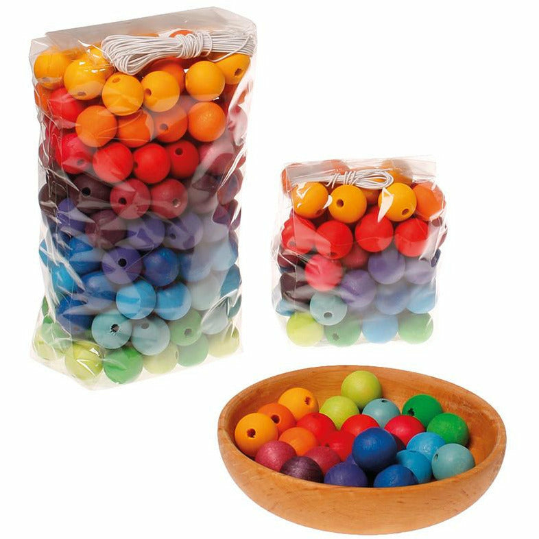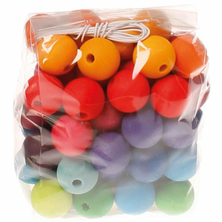 Holzperlen sind eines der elementarsten Spielmaterialien für Kinder. Beim Fädeln wird die Auge-Hand Koordination gefördert und die Feinmotorik geschult. Diese bunten Holzperlen sind in 12 Regenbogenfarben von hellgelb über Rot- und Blautöne bis hellgrün sortiert. Zum Aufbewahren ist unsere Sortierhilfe für Perlen mit passenden Holzkistchen in den 12 Farben wunderbar geeignet (Art. Nr. 10299). 60 Holzperlen. Holz: Ahorn farblich lasiert. Maße: Durchmesser 20mm.