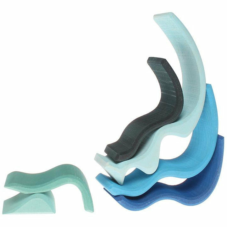 Die kleine Wasserwelle ist ein sehr vielseitiges Spielzeug: Die Kinder stapeln und sortieren oder sie können damit Wasser wogen lassen, Zäune, Brücken, Häuschen und Skulpturen bauen, und und und... die Wasserwelle wird immer fantasievoll ins Spielen integriert sein, schauen Sie zu was Ihr Kind alles damit erfindet! 6 Teile. Holz: Lindenholz farblich lasiert. Maße: Länge 14cm.