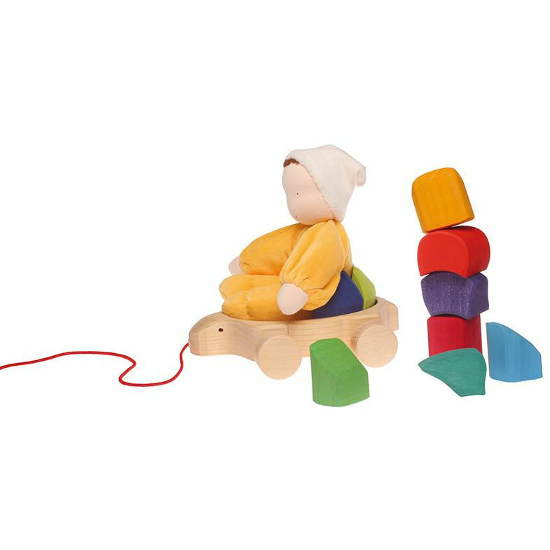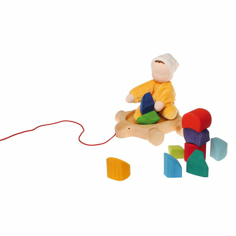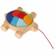Wenn Kinder Laufen gelernt haben, ziehen sie gerne etwas hinter sich her. Die Schildkröte ist ein vielseitiger Begleiter: Der Rückenpanzer ist ein anspruchsvolles Puzzle aus Bauklötzen. Es gibt viel Fläche zum Beladen für die Klötzchen oder auch für die Lieblingspuppe zum Spazieren fahren. Schildkrötenpanzer in Regenbogenfarben, 10 Teile. Holz: Lindenholz geölt, Panzerteile farblich lasiert. Maße: Länge 24cm.