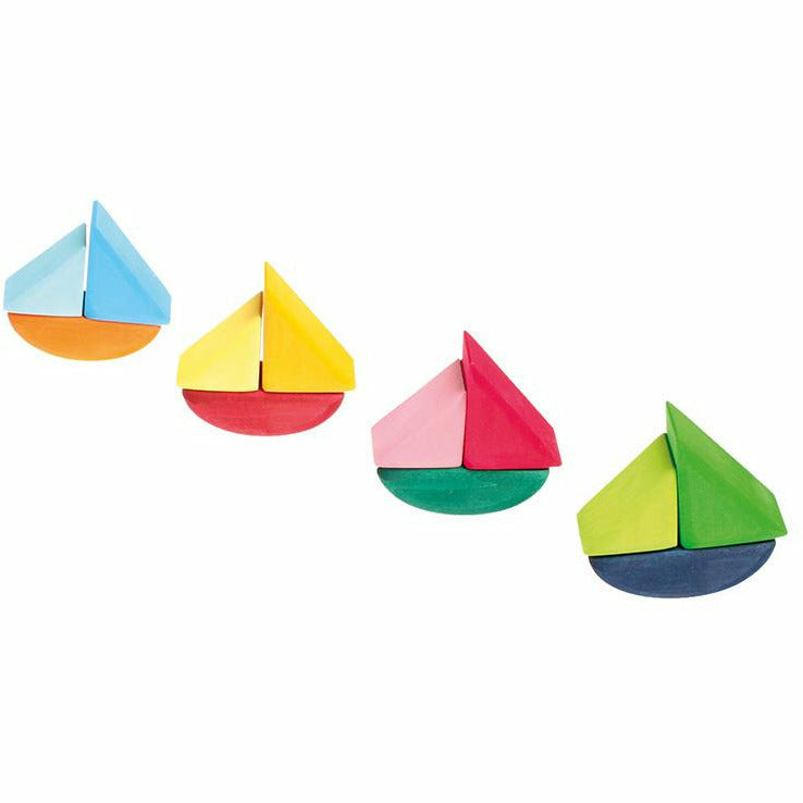Die Schaukelschiffe sind für Kinder ab einem Jahr zum stecken, Farben neu kombinieren und sortieren, Schiffchen spielen und auch zum bauen. Wunderschön kombinierbar mit der Wasserwelle (Art. Nr. 10720). 12 Teile. Holz: Lindenholz farblich lasiert. Maße: Länge 10cm.