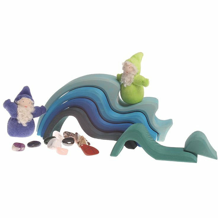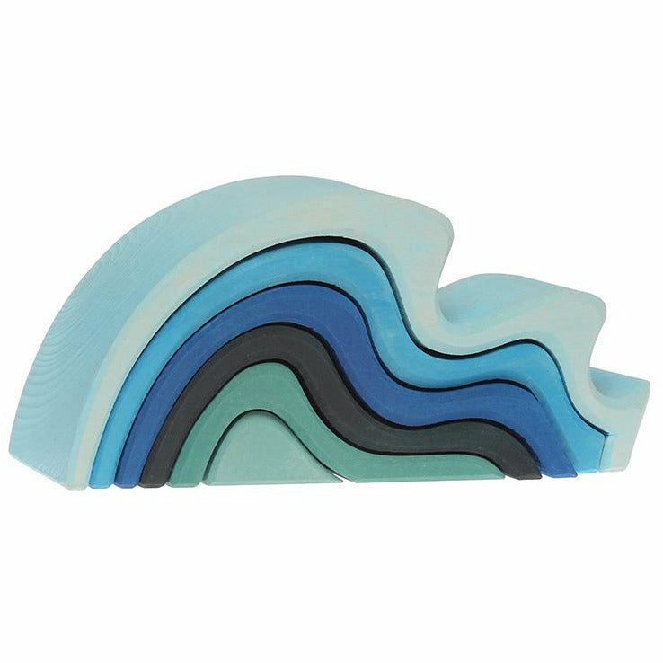 Die Wasserwelle ist ein sehr vielseitiges Spielzeug und schon für Krabbelkinder wunderbar zum Spielen geeignet! Die Kleinen stapeln, bauen und sortieren. Wenn die Kinder älter sind kann man damit Wasser wogen lassen, Zäune, Tunnel, Brücken, Häuschen und Skulpturen bauen, und und und... die Wasserwelle wird immer fantasievoll ins Spielen integriert sein, schauen Sie zu was Ihr Kind alles damit erfindet! 6 Teile. Holz: Lindenholz farblich lasiert. Maße: Länge 22cm.