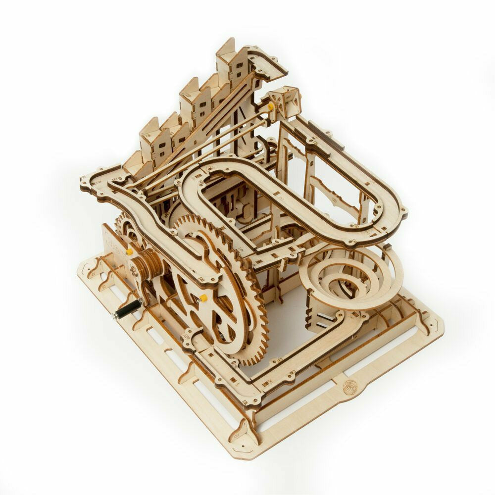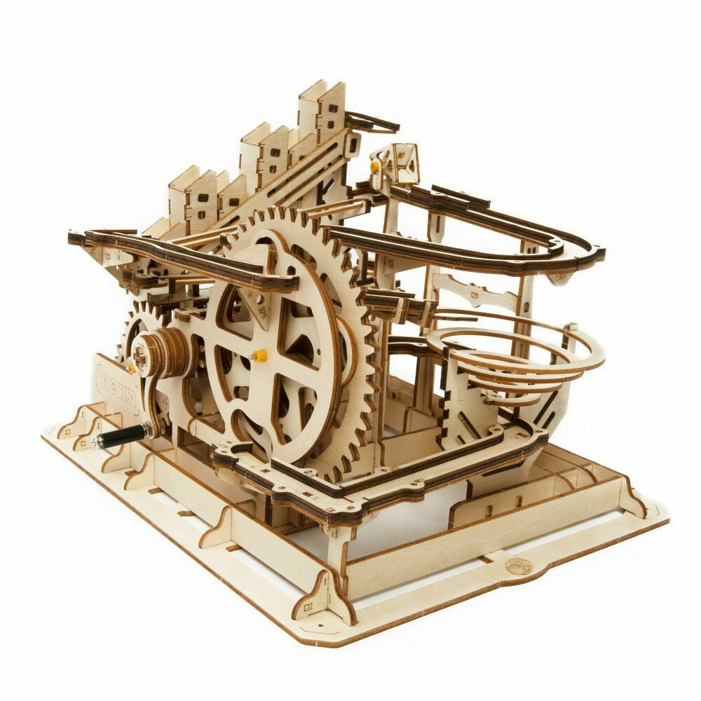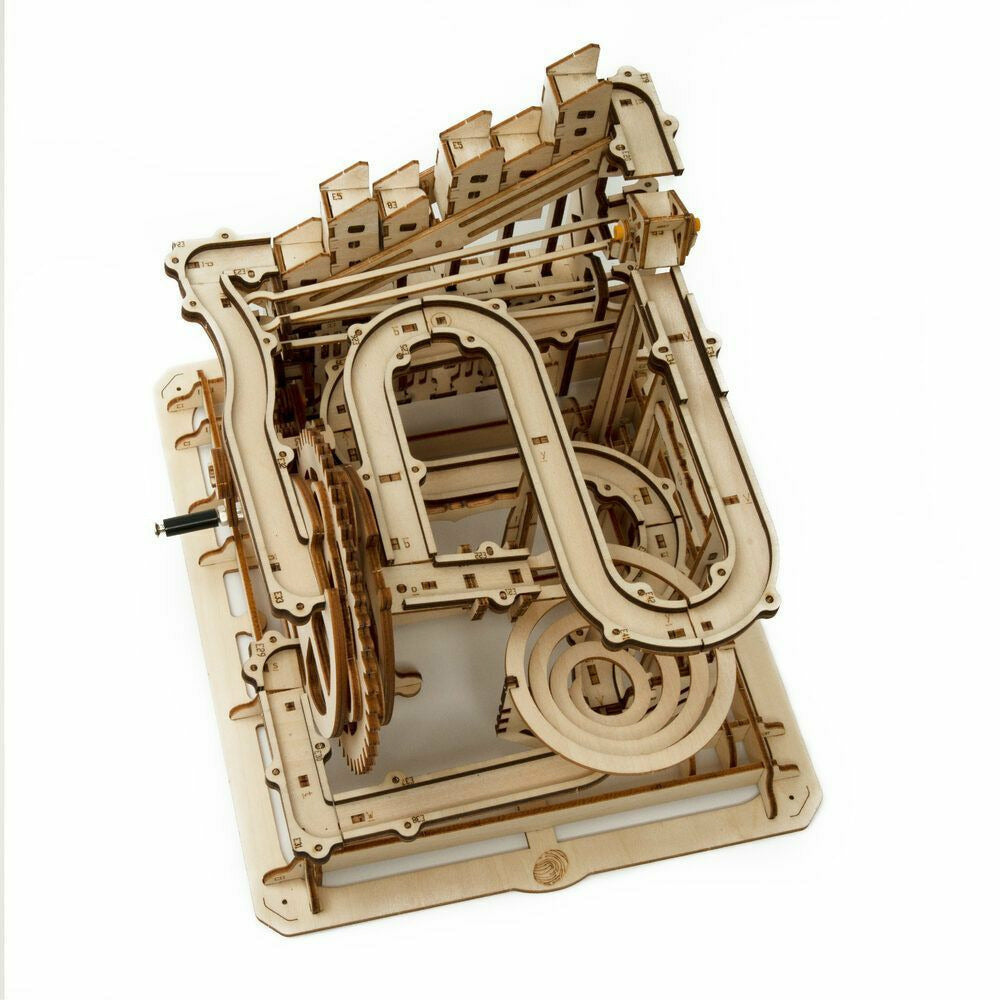 Robotime-ROKR Marble Run Race basiert auf großartiger menschlicher Ingenieurskunst. Sie kombinieren die Schönheit der Wissenschaft und Maschinen, mit so vielen kleinen Gadgets. Bauen Sie das Set und kurbeln Sie die Kurbel, beobachten Murmeln laufen verrückt die Hänge hinunter und verdrehte Kurven.