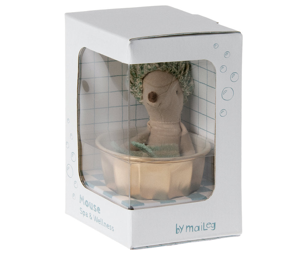 Wie alle anderen liebt es auch diese Maus, Stunden im warmen Wasser im Spa zu verbringen. Dieses Spielset enthält eine goldene Badewanne, eine Maus und ein Handtuch.