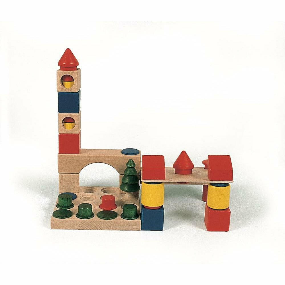 Tolle Bauklötze, die ineinander gesteckt werden können. Massiv hergstellt und speichelecht. Freie Bauwerke enstehen bereits ab 1,5 Jahren.