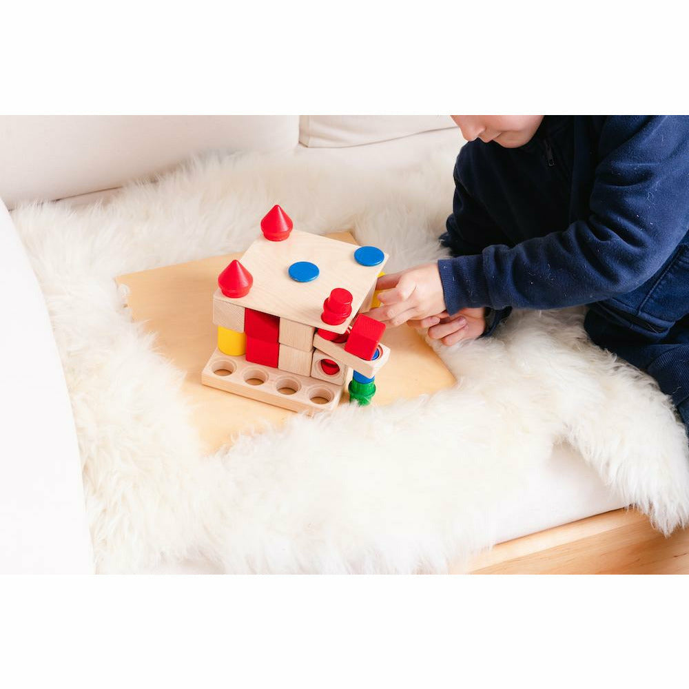 Ein geniales Steckbaustein-Prinzip, was sich von allen anderen Bauklötzen unterscheidet. Die hochwertigen Bausteine können ineinandergesteckt werden und fallen dadurch nicht so schnell um. Aus besten Hölzern hergestellt und mit absolutem Spielwert versehen. Speichelecht und nicht verschluckbar! Der Grundkasten beinhaltet 44 Bauteile und lässt sich mit allen anderen cubio-Produkten kombinieren. In diesem Set bleibt nichts offen: Kleine Baumeister ab 1,5 Jahren legen hier die ersten Grundsteine.