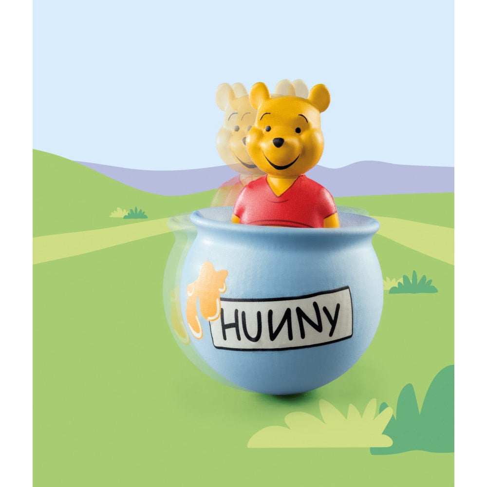 "Mit Winnies lustigem Stehauf-Honigtopf werden spielerisch die feinmotorischen Fähigkeiten der ganz Kleinen trainiert und gleichzeitig kausales Denken gefördert. Nach Anstupsen des Honigtopfes richtet sich dieser immer wieder neu auf und wackelt hin und her. Maße: 6 x 6 x 6 cm (LxTxH)"