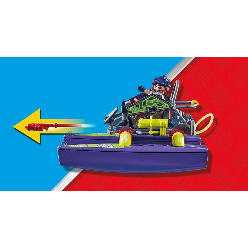 Das Multi-Terrain-Quad des SEK lässt sich kinderleicht transformieren und ist bestens geeignet für Verfolgungsjagden zu Land oder zu Wasser. Mit wenigen Handgriffen verwandelt sich das Quad dank der Schiwmmkörper in ein Wasserfahrzeug. Die Optikblenden können ausgetauscht werden. Die enthaltene Figur besitzt einen Wendekopf und kann sich vom SEK-Beamten in einen Bösewicht verwandeln.