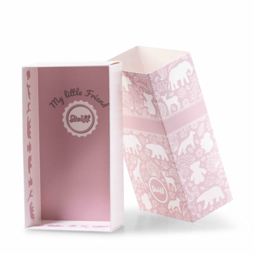 Wildlife Giftbox Husky ist 11 cm groß und aus feinstem Mohair in schwarz/weiss gefertigt. Den niedlichen Gesichtsausdruck verleihen die detaillierten Garnierungen und die dezente Airbrushtechnik. Der Wildlife Giftbox Husky kommt mit der abgebildeten Box ins Haus. Mit dem schicken Tierprint und dem Steiff Logo ist die Box ebenfalls ein echter Hingucker. Und damit die adäquate Verpackung für ein Geschenk der besonderen Klasse.