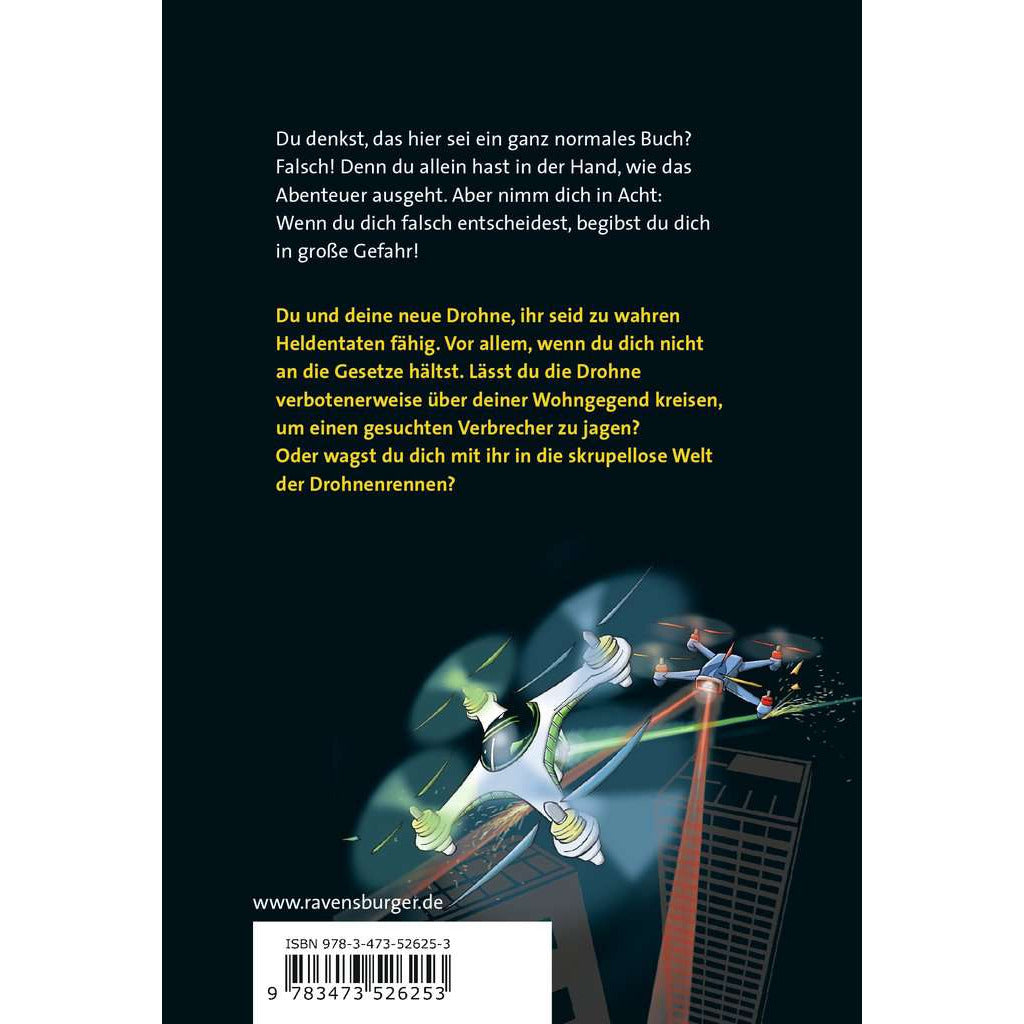 Du und deine neue Drohne, ihr seid zu wahren Heldentaten fähig. Vor allem, wenn du dich nicht an die Gesetze hältst. Lässt du die Drohne verbotenerweise über deiner Wohngegend kreisen, um einen gesuchten Verbrecher zu jagen? Oder wagst du dich mit ihr in die skrupellose Welt der Drohnenrennen? Hier entscheidest du allein, wie dein Abenteuer weitergeht. Doch nimm dich in Acht: Überall lauern Gefahren. Ein falscher Schritt und du bist verloren! Weitere Titel der Reihe _x001E_ 1000 Gefahren": Die Insel der 1000 Gefahren 1000 Gefahren zur Geisterstunde Der Urwald der 1000 Gefahren Das Meer der 1000 Gefahren Die Pyramide der 1000 Gefahren Das Fußballspiel der 1000 Gefahren Die Wüste der 1000 Gefahren 1000 Gefahren auf dem Piratenschiff 1000 Gefahren im Strafraum 1000 Gefahren im Gruselschloss 1000 Gefahren im Internet 1000 Gefahren in der Drachenhöhle 1000 Gefahren bei den Rittern der Tafelrunde 1000 Gefahren am Katastrophentag 1000 Gefahren im alten Rom 1000 Gefahren im Reich des Pharao 1000 Gefahren im Fußballstadion 1000 Gefahren bei den Dinosauriern 1000 Gefahren bei den Indianern Das Handy der 1000 Gefahren Die Safari der 1000 Gefahren Agent der 1000 Gefahren 1000 Gefahren in den USA 1000 Gefahren in der Wildnis Die Mannschaft der 1000 Gefahren Konsole der 1000 Gefahren 1000 Gefahren auf dem Mars 1000 Gefahren in der Schule des Schreckens Fußballpokal der 1000 Gefahren Das Laserschwert der 1000 Gefahren Der Superheld der 1000 Gefahren Die App der 1000 Gefahren 1000 Gefahren in der versunkenen Stadt