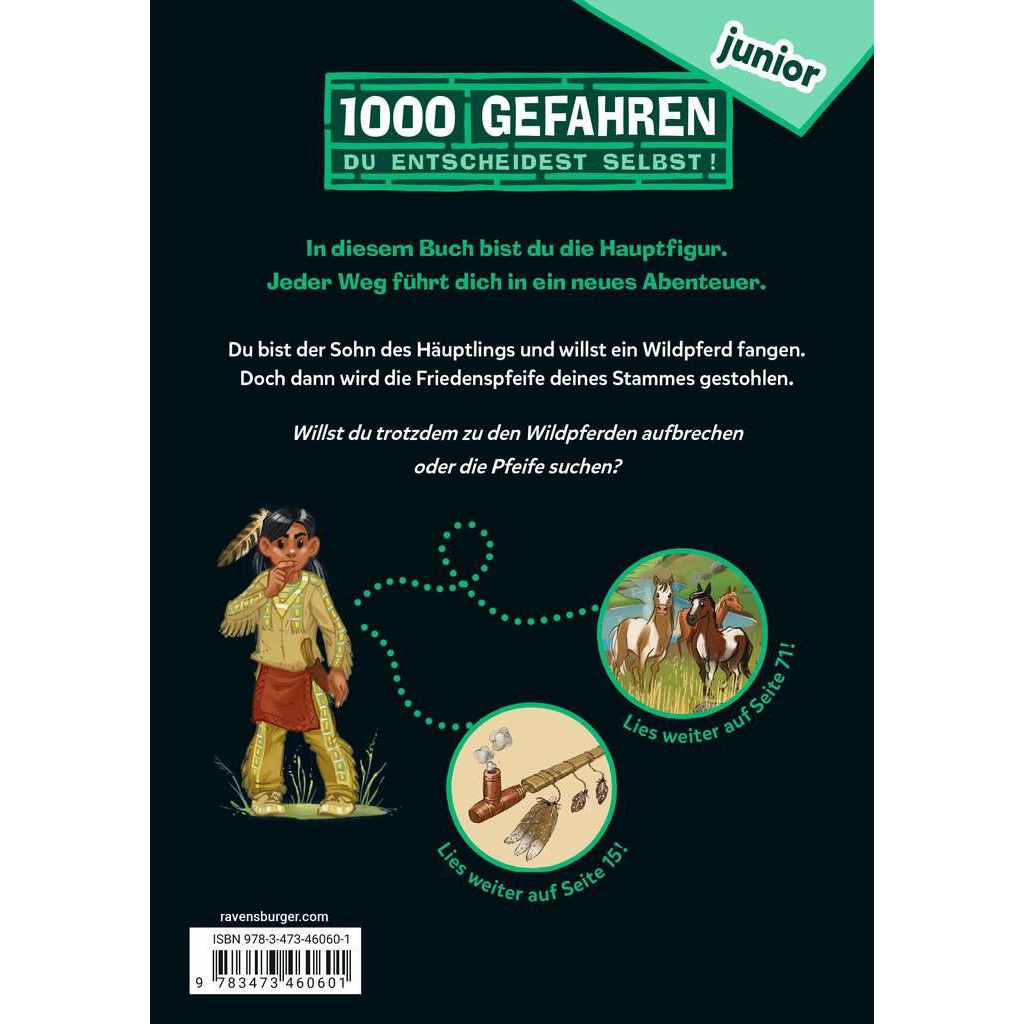 1000 Gefahren - 1000 Abenteuer! Jetzt bist du an der Reihe! Du bist die Hauptperson. Entscheide selbst, wie sich die Geschichte entwickelt. Du bist der Sohn des Häuptlings und in der Prärie jagt ein Abenteuer das nächste. Siedler ziehen mit ihren Planwagen durch euer Land. Zur selben Zeit wird die Friedenspfeife deines Stammes geraubt. Doch eigentlich wolltest du den Spuren der Wildpferde folgen, um eines der edlen Tiere zu zähmen. Wenn du dich mit deinen Freunden auf die Spurensuche begibst, lies weiter auf Seite ... Die beliebte Kinderbuch-Reihe „1000 Gefahren. Du entscheidest selbst!“ nun endlich auch für Erstleser! Jeder Weg entführt dich in ein neues Abenteuer. Welchen Weg wählst du? Welcher Spur folgst du? Geht deine Geschichte jetzt schon zu Ende? Ein ganz besonderes Rätsel- und Entscheidungsbuch für Kinder! Mit farbigen Bildern und Fibelschrift - für Leseanfänger ab 7 Jahren perfekt geeignet. Band 1: Böses Spiel im Dinopark, Band 2: Aufruhr in der Ritterburg, Band 3: Das Geheimnis der Pirateninsel, Band 4: Heiße Spur im Wilden Westen, Band 5: Disney Villains: Chaos beim Korallenfest, Band 6: Disney Villains: Ein tierisch guter Plan