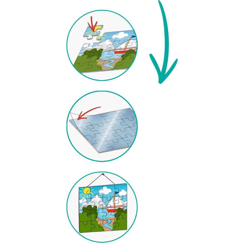 Dein Lieblingspuzzlemotiv sicher und schnell fixieren? Ab sofort kein Problem mehr: Einfach das gelegte Puzzle umdrehen, die Klebefolien platzieren, abziehen und aufkleben. Fertig! Anschließend können die Puzzlekunstwerke stolz präsentiert oder als Kinderzimmerschmuck an die Wand gehängt werden.
