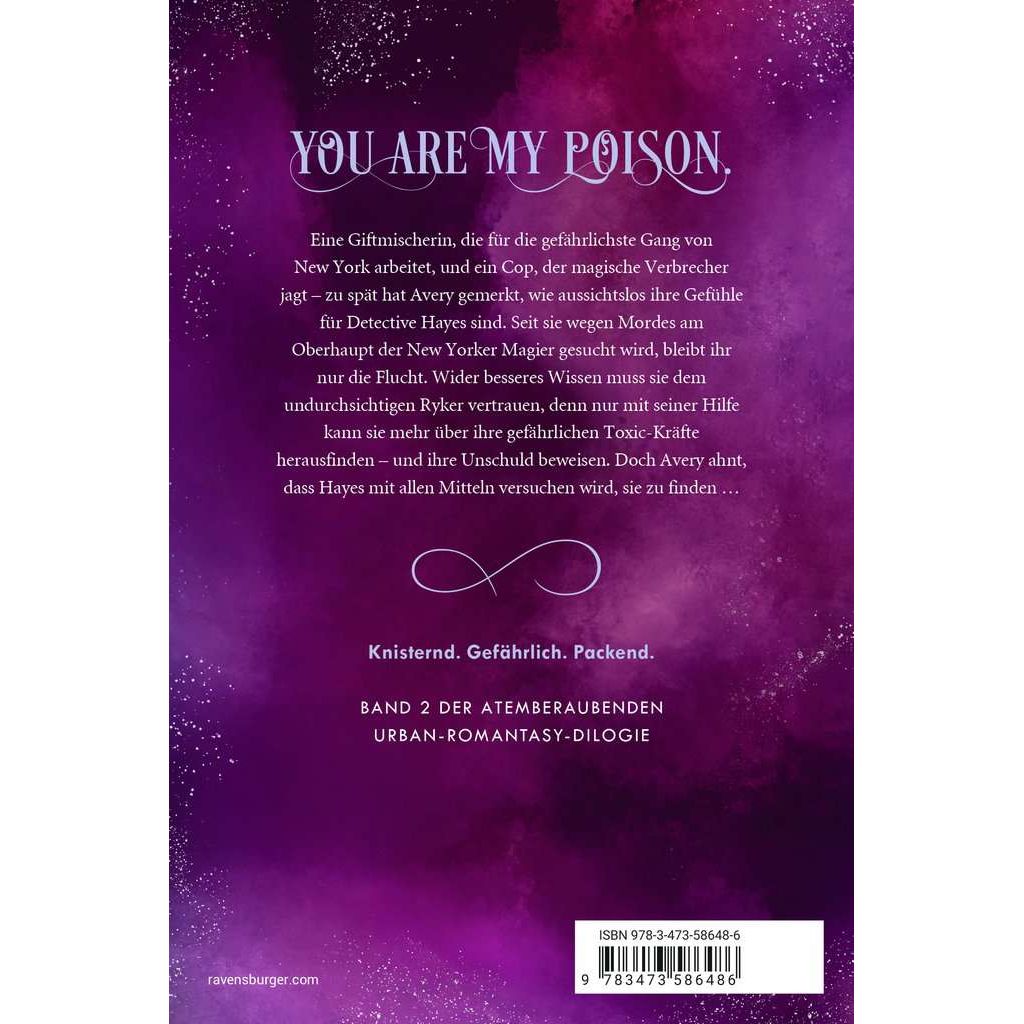 You are my poison. Eine Giftmischerin, die für New Yorks gefährlichste Gang arbeitet, und ein Cop, der magische Verbrecher jagt – zu spät hat Avery gemerkt, wie aussichtslos ihre Gefühle für Detective Hayes sind. Seit sie wegen Mordes am Oberhaupt der New Yorker Magier gesucht wird, bleibt ihr nur die Flucht. Wider besseres Wissen muss sie dem undurchsichtigen Ryker vertrauen, um mehr über ihre gefährlichen Toxic-Kräfte herauszufinden. Doch Avery ahnt, dass Hayes mit allen Mitteln versuchen wird, sie zu finden. Knisternd. Gefährlich. Packend. Der Abschluss der atemberaubenden SPIEGEL-Bestseller-Dilogie