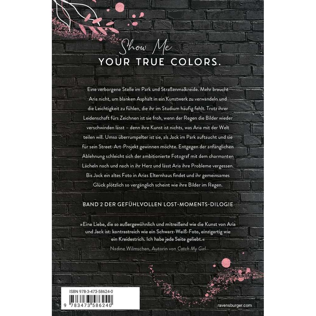 Show me your true colors. Aria braucht nur ein paar Kreidestriche, um blanken Asphalt in ein Kunstwerk zu verwandeln. Trotz ihrer Leidenschaft fürs Zeichnen ist sie froh, wenn der Regen ihre Bilder wieder verschwinden lässt. Umso überrumpelter ist sie, als der ambitionierte Fotograf Jack sie für sein Street-Art-Projekt gewinnen möchte. Nach und nach schleicht Jack sich in ihr Herz, bis er ein altes Foto in Arias Elternhaus findet und ihr gemeinsames Glück plötzlich so vergänglich scheint wie ihre Bilder im Regen. Intensiv. Mutig. Leidenschaftlich. Band 2 der gefühlvollen New-Adult-Reihe von Rebekka Weiler. Die Bücher der Lost-Moments-Reihe: Band 1: The Moment I Lost You Band 2: The Moment You Found Me