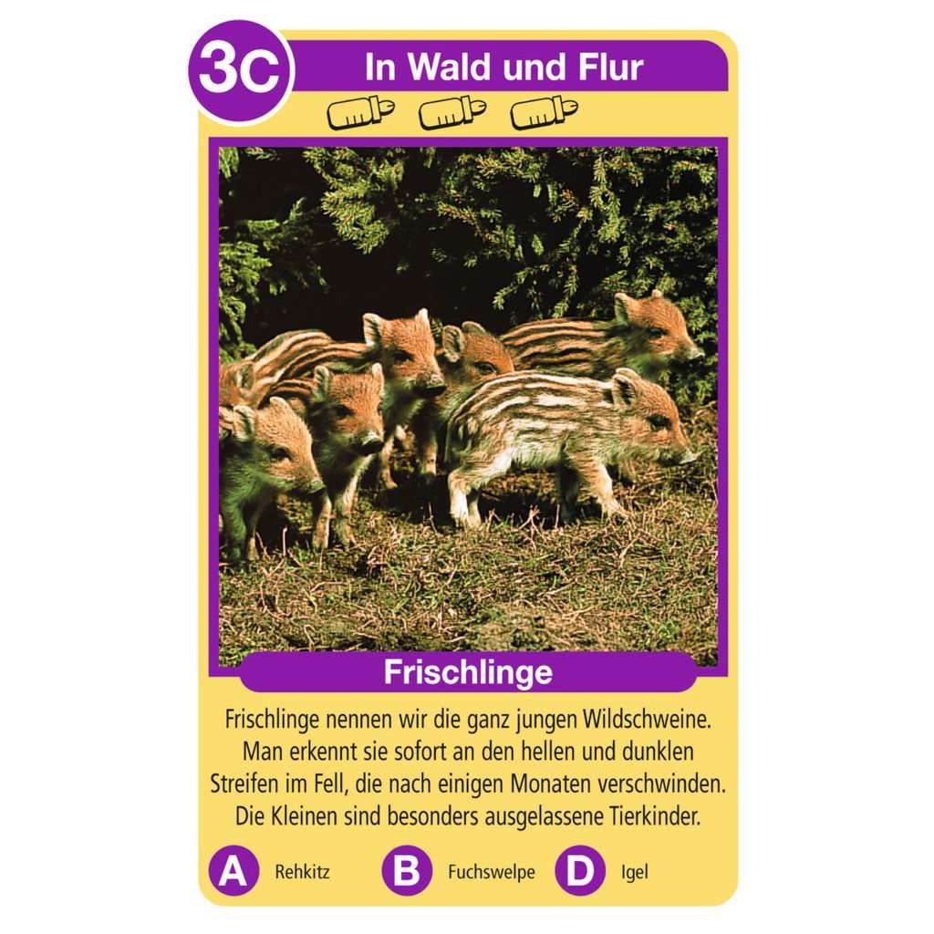 Ein klassisches Quartettspiel rund um die süßen Tierbabys: Zu den einzelnen auf den Karten abgebildeten Tieren ist jeweils eine Wissensfrage mit 3 Antwortmöglichkeiten aufgedruckt. Ein Quartett wird aus vier Karten einer Kategorie gebildet, z. B. Karte 1A, 1B, 1C, 1D. Damit man weiß, welche Tiere auf den anderen Karten einer Kategorie zu sehen sind, steht dies unten auf der Karte. Der Text dient als kurze und spannende Zusatzinformation zu den Tierkindern. Auf der Rückseite der letzten Karte sind die genauen Spielregeln beschrieben.