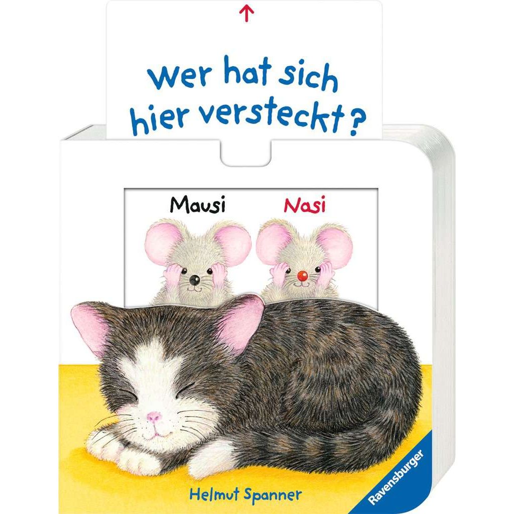 Wer sitzt in der Holzeisenbahn und wer knabbert an der Birne? Die kleinen Mäuse Nasi und Mausi treiben allerlei Schabernack und verstecken sich hinter zahlreichen Alltagsgegenständen. Doch wer von beiden ist wo? Ein lustiges Frage-Antwort-Spiel lädt Kinder ab 18 Monaten zum Entdecken ein. So werden spielerisch Feinmotorik und Sprachentwicklung gefördert. Das kompakte Buch passt in jede Hand- oder Wickeltasche und ist der ideale Begleiter für unterwegs. Die beiden Mäuschen Nasi und Mausi haben sich gut versteckt. Doch, was raschelt da hinter dem Eimer? Und wer sitzt in der Holzeisenbahn, im Schuh, zwischen den Bauklötzen und in der Gießkanne?Ein lustiger Zieh- und Schiebespaß nach dem Kuckuck-da-Prinzip, bei dem Kinder ab 18 Monaten allerlei Alltagsgegenstände wiedererkennen und benennen lernen.Spielend leicht ziehen schon kleine Kinderhände die stabilen Schieber heraus. Die detailgenauen Illustrationen von Helmut Spanner und die beinahe greifbare Struktur der Bilder begeistern Groß und Klein. So wirken die Gegenstände in diesem Pappbilderbuch sehr realistisch und können von Kleinkindern besonders gut erkannt werden.Der kurze Text in Form eines ersten Frage-Antwort-Spiels bindet kleine Entdecker aktiv ins Vorlesen ein und regt sie zum genauen Hinsehen und Sprechen an. So erweitern sie spielerisch ihren Wortschatz und trainieren ganz nebenbei die Feinmotorik.Dank des handlichen Formats findet dieses kleine Büchlein Platz in jeder Wickel- oder Handtasche.