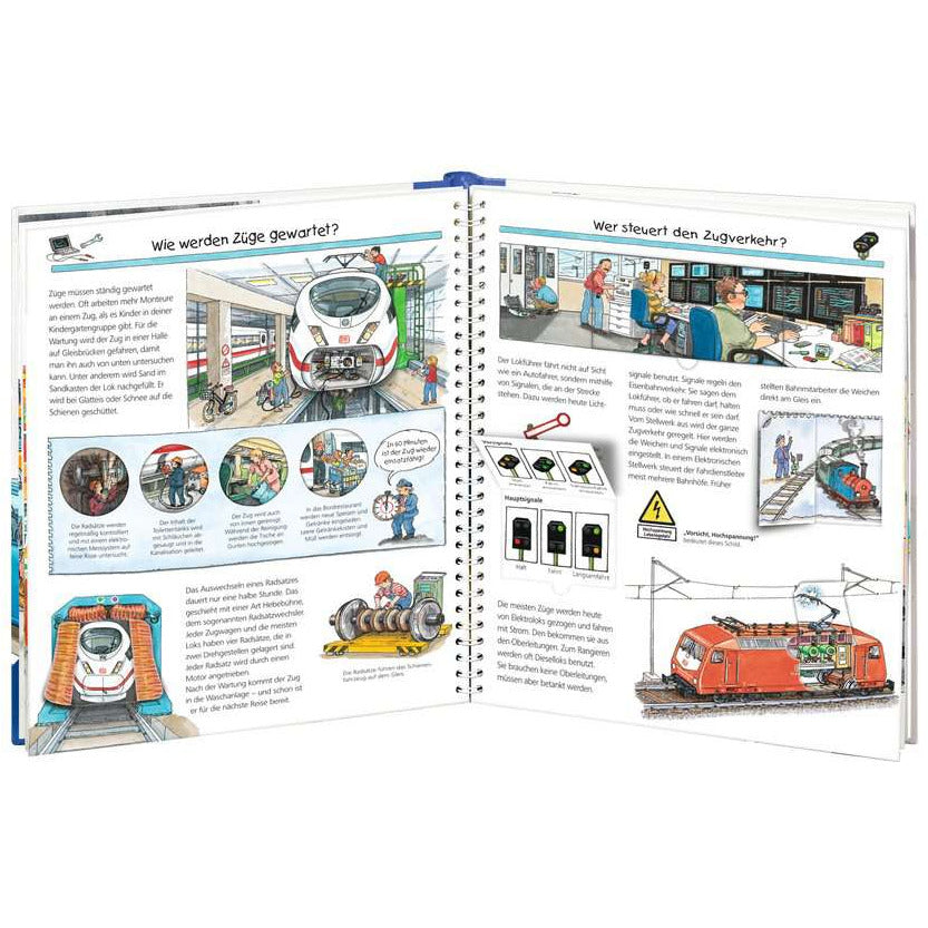 Zugfahren ist für Kinder immer ein besonderes Erlebnis. Alles wird zum Abenteuer: der Kauf der Fahrkarte, das Einfahren des Zuges, das Einsteigen, die Begegnung mit dem Zugbegleiter und der Blick aus dem Fenster. Es gibt so viel zu entdecken! Was passiert am Bahnhof? Wie sieht es im ICE aus? Wieso gibt es Signale und Weichen? Das Grundlagenwerk für kleine Eisenbahnfans beantwortet diese und noch viele weitere Fragen ganz anschaulich _x0013_ und mit vielen Klappen.