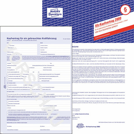 Avery-Zweckform | Kaufvertrag für ein gebrauchtes Kfz | 2880