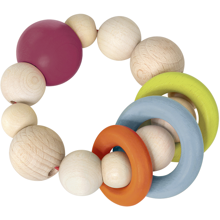 Leise rasselnd faszinieren die drei farbigen Klapperringe. Der Greifspaß Kugel ist schon für die Kleinsten ideal zu greifen. Fördert den Tast- und Greifsinn und die bewusste Wahrnehmung von Farben und Geräuschen.