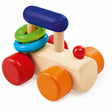 Klassische, bunte Lok mit Klapperringen, die zum Greifen, Schieben und Hinterherkrabbeln animiert.