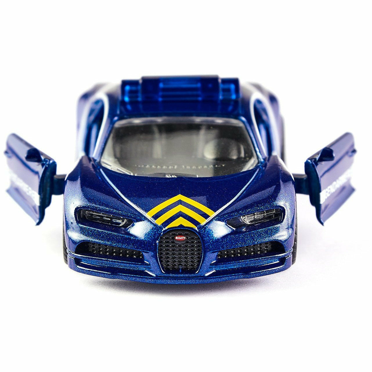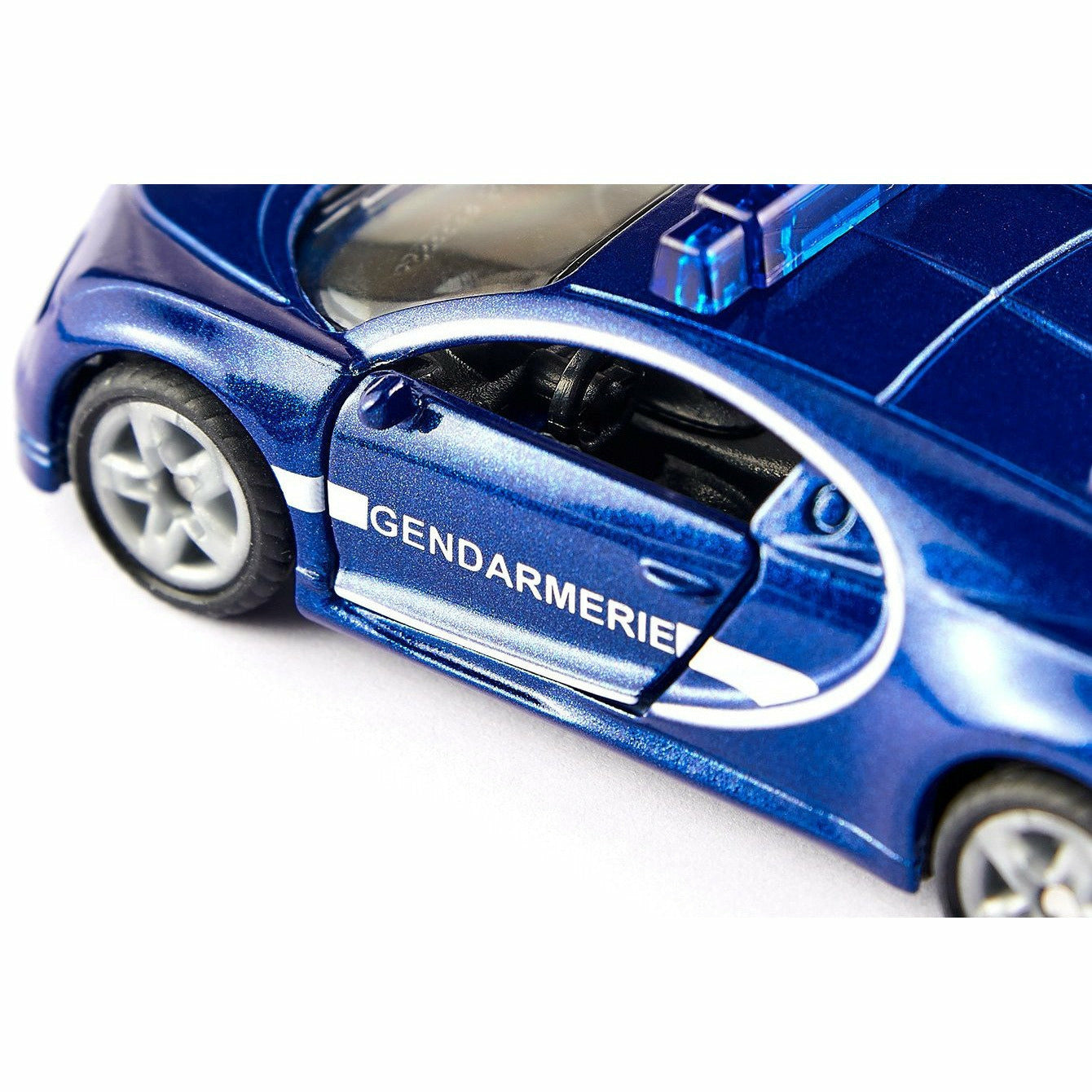 ins, zwei: Das schnellste Polizeiauto der Welt stürmt in 2,3 Sekunden auf Tempo100 und fährt 420 km/h schnell. Der Bugatti Chiron wird in Frankreich nur von speziell ausbildeten Beamten pilotiert. Mit den Spezialreifen aus gummiertem Material auf den Sportfelgen machen die Polizisten Jagd auf Temposünder. Der Supersportwagen ist bei siku im originalgetreuen Design lackiert.