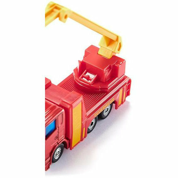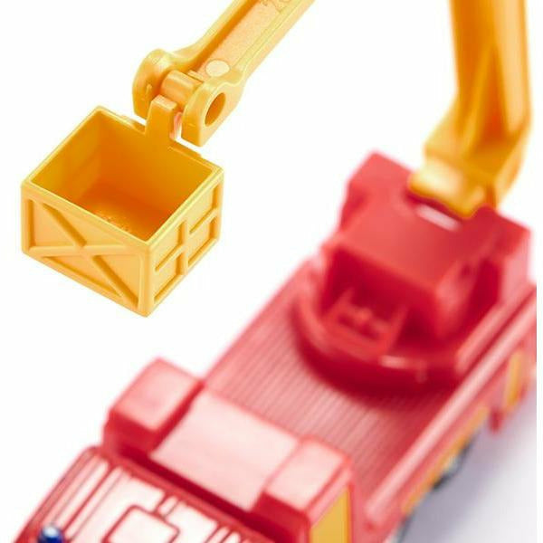 Brand im vierten Geschoss, durch das Treppenhaus ist keine Rettung möglich, dann ist die Feuerwehr Hubrettungsbühne am Einsatzort zur Stelle. Wie beim großen Vorbild ist der Mast drehbar, der Tragekorb schwenkbar und die Hubrettungsbühne ausklappbar. Die siku Feuerwehr Hubrettungsbühne fährt auf einem 3-Achs-Fahrgestell mit einem Fahrerhaus aus Metall zum Einsatz.