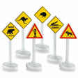 Verkehrsschilder bitten hierzulande in ländlichen Regionen um erhöhte Aufmerksamkeit vor Rindern oder im Wald vor Wild. Doch mit SIKU Fahrzeugen wird in der ganzen Welt gespielt. Klar, dass dort vor anderen Tieren auf oder neben der Straße gewarnt wird: Bären, Elchen, Kängurus, Kiwis, Krokodilen. Und wenn mal ein Ufo landet, grüßt freundlich der Außerirdische. Die aus hochwertigem Kunststoff in der bewährten SIKU Qualität gefertigten Schilder sind besonders robust und standfest. Mit den internationalen Warnhinweisen geht es mit den SIKU Fahrzeugen und der SIKUWORLD auf Entdeckungstouren in fremde Länder und auf entfernte Kontinente.