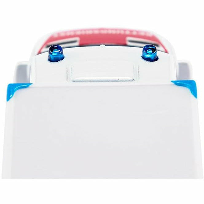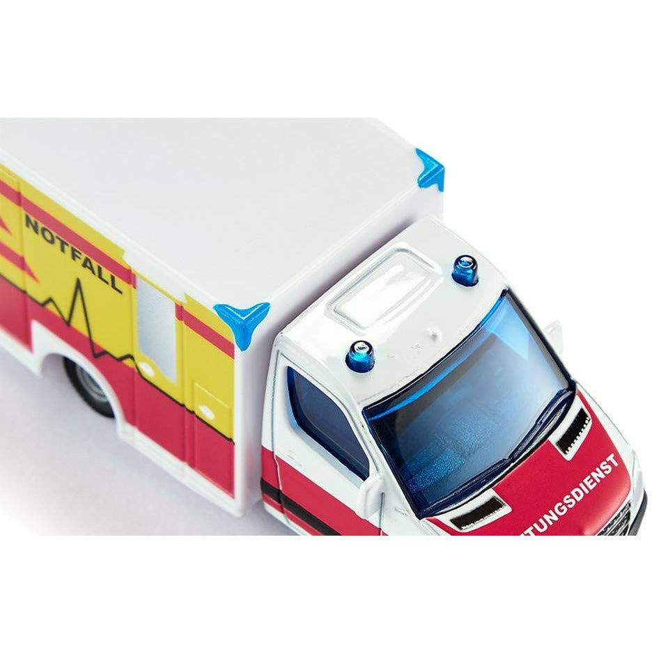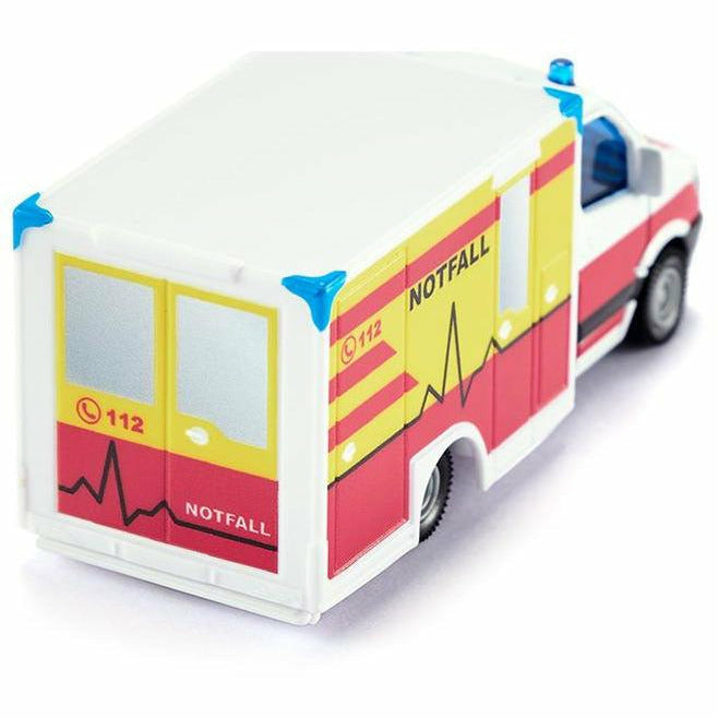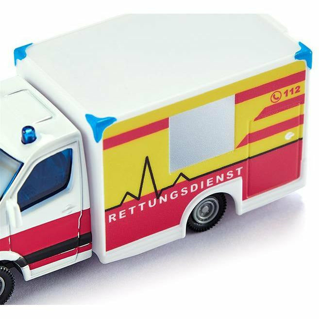 Mit Blaulicht und Signalhorn zum NotfallNotrufzentrale: Kaum ist der Anruf eingegangen, ist der Rettungswagen schon unterwegs. Blaulicht und Signalhorn an. Jede Sekunde ist entscheidend. Mit Tempo geht es zum Einsatzort. Der Rettungswagen ist auf Basis eines Mercedes-Benz-Sprinter aufgebaut, Fahrerhaus und Kofferaufbau sind wie sein Vorbild aufwändig lackiert.