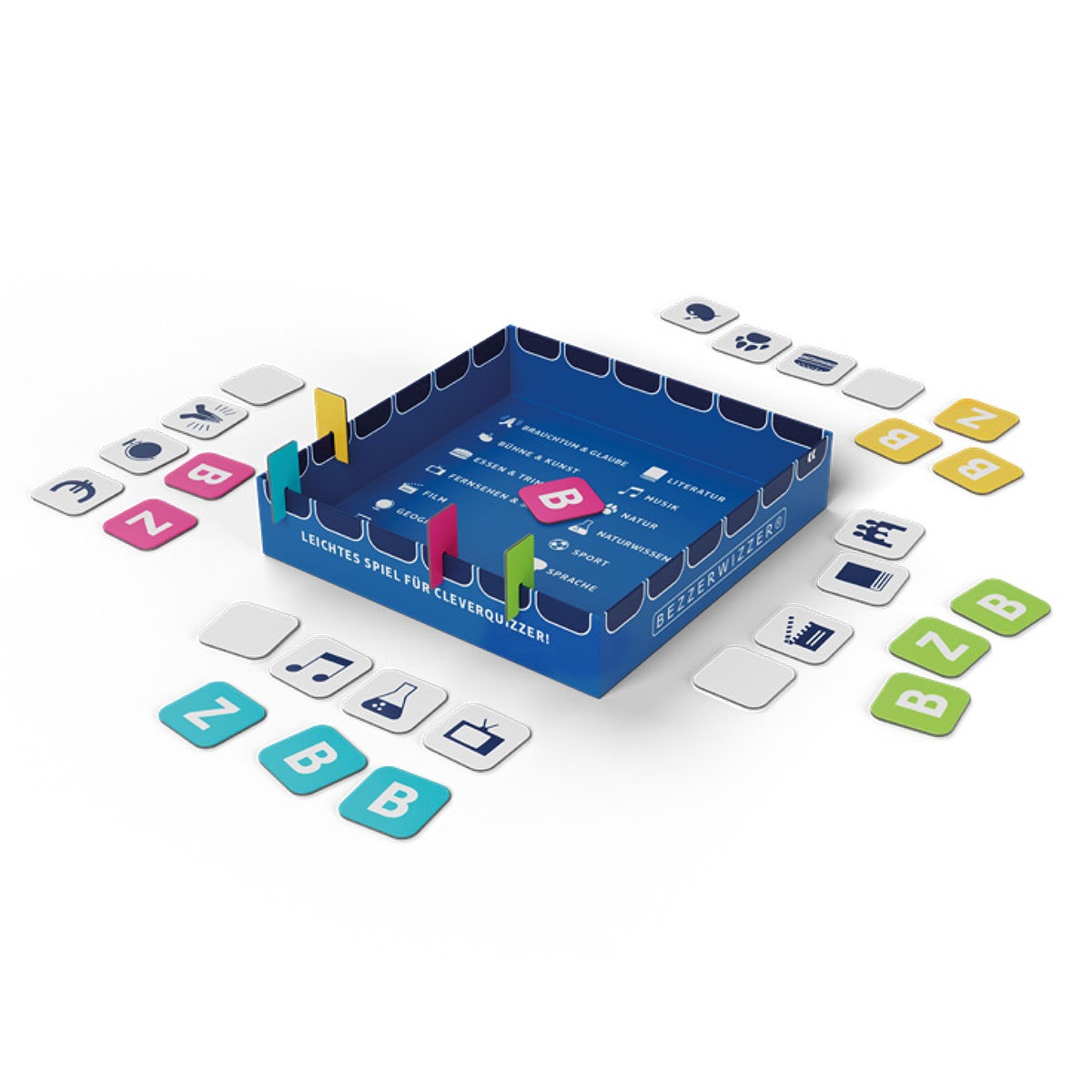 BEZZERWIZZER Pocket ist die kompakte Variante des beliebten Quizspiel Klassikers. Beantwortet in Teams – wobei Teams aus einem oder mehreren Spielern bestehen können – Fragen aus 16 Kategorien über mehrere Runden. In jeder Runde erhält jedes Team vier Kategorien, aus denen Fragen beantwortet werden. Je nachdem auf welchem Feld eine Kategorie liegt, gibt die richtige Antwort ein bis vier Punkte. Wählt also weise, auf welches Feld ihr eine Kategorie legt.
