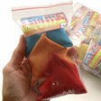 Die aus Baumwollstoff genähten Säckchen in Tetraeder-Form haben eine Kunststofffüllung. Sie sind leicht zu greifen und auch sehr gut für kleine Hände geeignet. Ideal für Anfänger. Das Set ist bunt sortiert (keine Farbwahl möglich).
