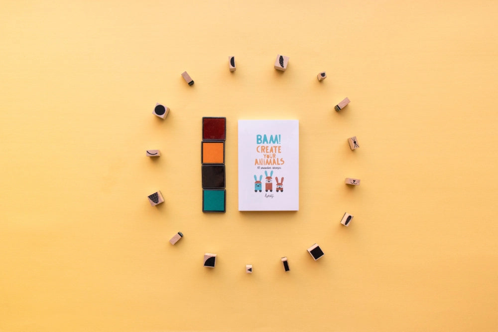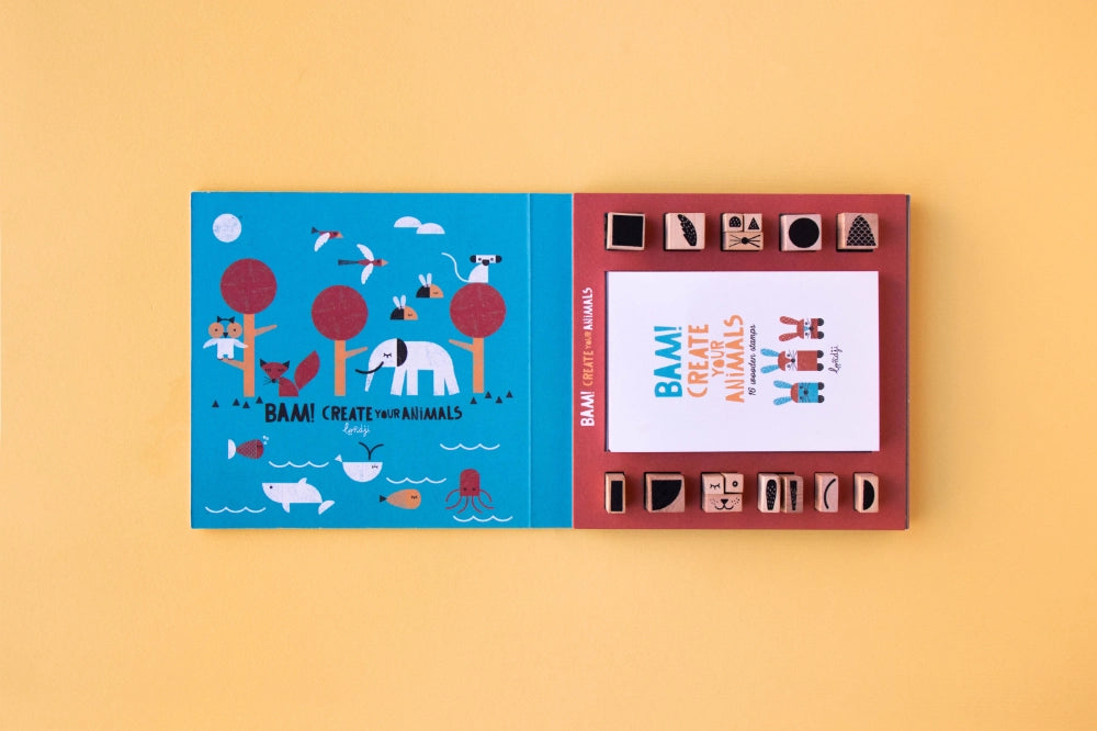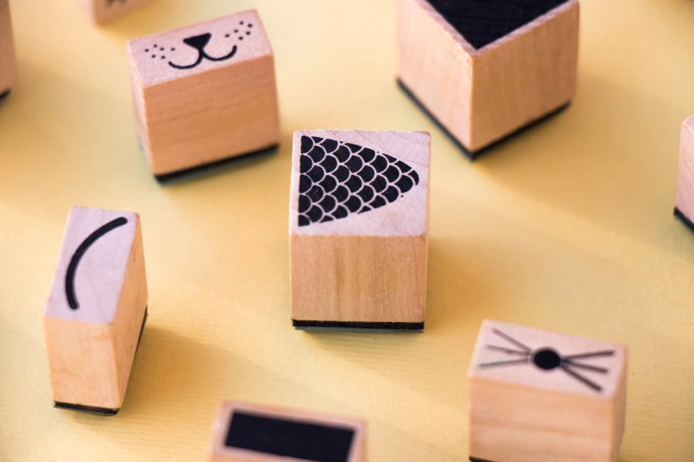 Durch das Kombinieren unserer Stempel werden Löwen, Elefanten, Wale, Fische und Giraffen geboren! Das Spiel enthält 16 Holzstempel und 4 farbige Stempelkissen. Ein Notizbuch ist ebenfalls enthalten, um deine wildesten Designs zu erfinden! Eine kreative Aktivität mit Stempeln! Durch das Kombinieren von Farben und Formen und die Nutzung deiner Fantasie werden erstaunliche Tiere entstehen. Dies ist ein kreatives Spielzeug für junge Künstler.
