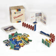 | Inhalt: 100 PESTAS-Dominosteine: Jeweils 23 kurze und 2 lange PESTAS in den Farben gelb, rot, grün und blau.