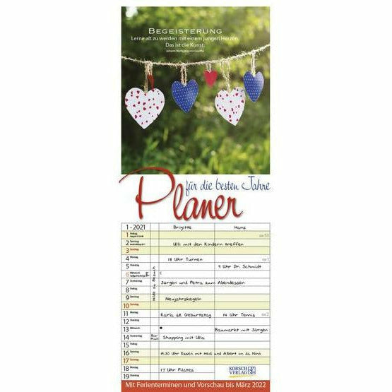 Der Planer für alle, die endlich Zeit haben für Hobbys, Freunde, Familie, Reisen und Co. Mit wunderschönen Fotos und klugen Zitaten. Neben dem gesamten Kalenderjahr enthält der Wandplaner auch eine Vorschau bis März des Folgejahres.