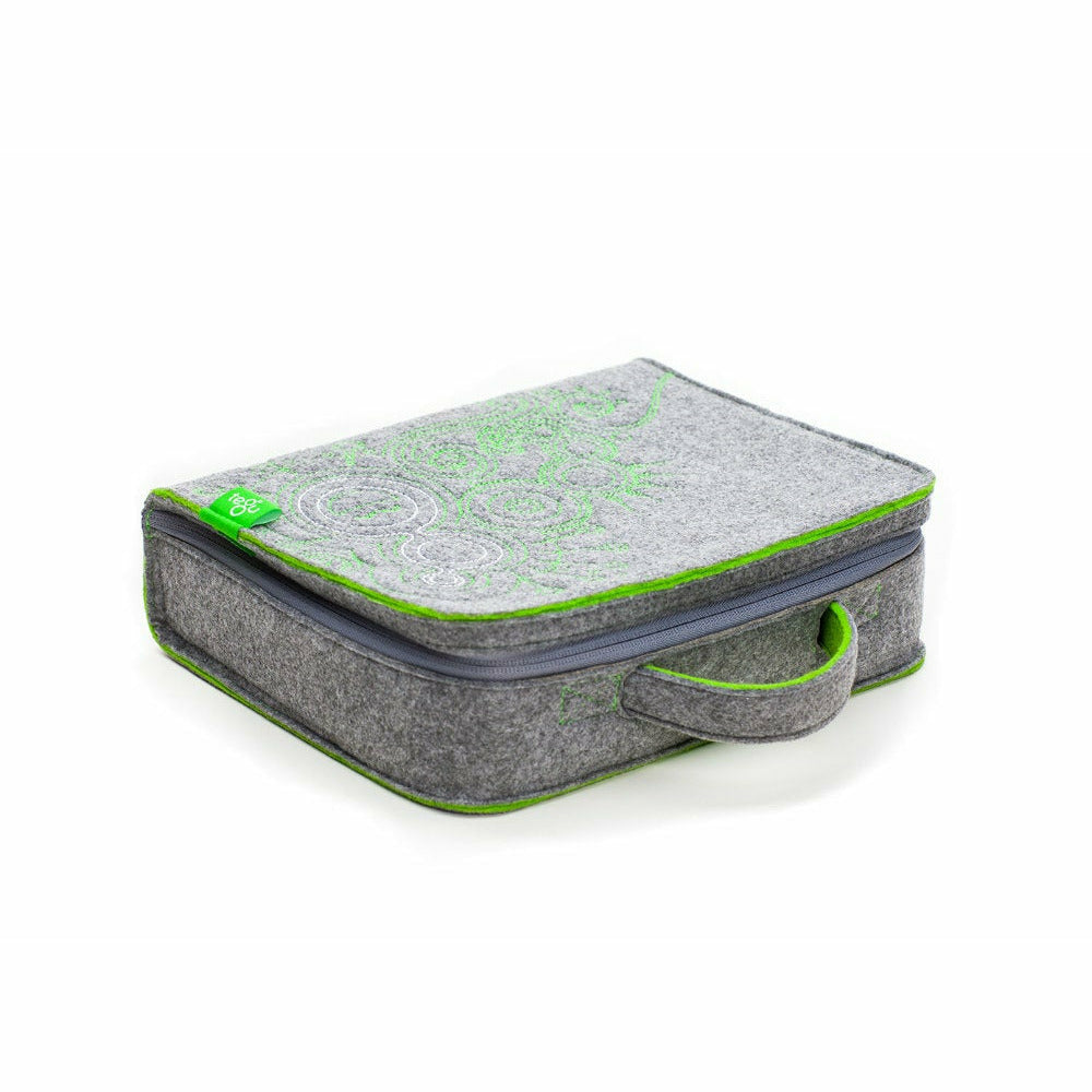 Handlicher und stylischer Reisekoffer aus robustem Filz für die Tegu-Blöcke. Masse 28x24x8cm (BxHxT), Blöcke nicht inklusive.